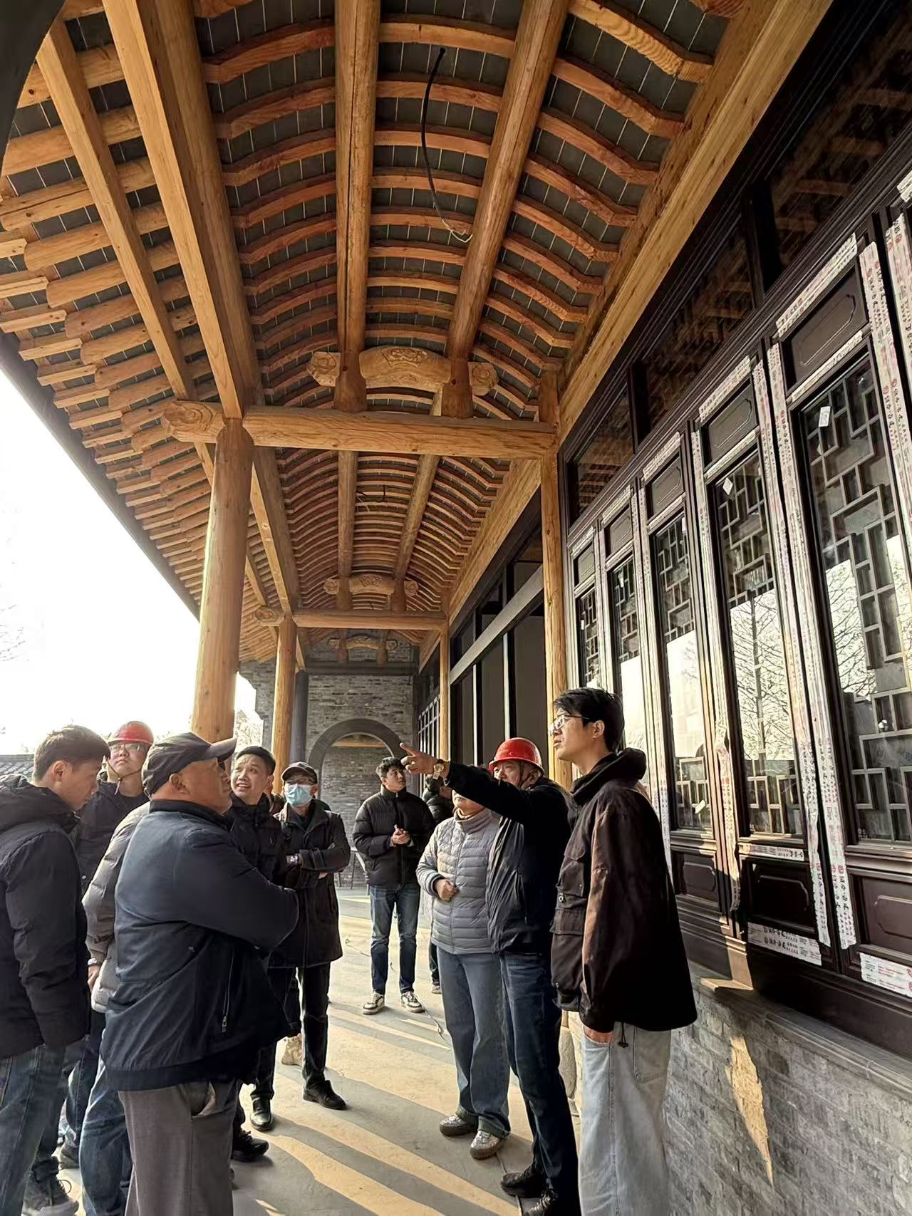 12月17日下午,广陵建工工程技术部组织项目部相关人员观摩文峰寺财神殿和法物流通处新建工程。广陵建工副总经理袁正东参加。文峰寺项目部成员从项目的使用功能、工程建设特(难)点、古建结构构造、施工工序等方面进行了分享与交流。活动最后所有人员意识到在质量管理工作中要发扬工匠精神,严格把关,按更高标准控制好每一道工序,加强质量管理,做精品工程。