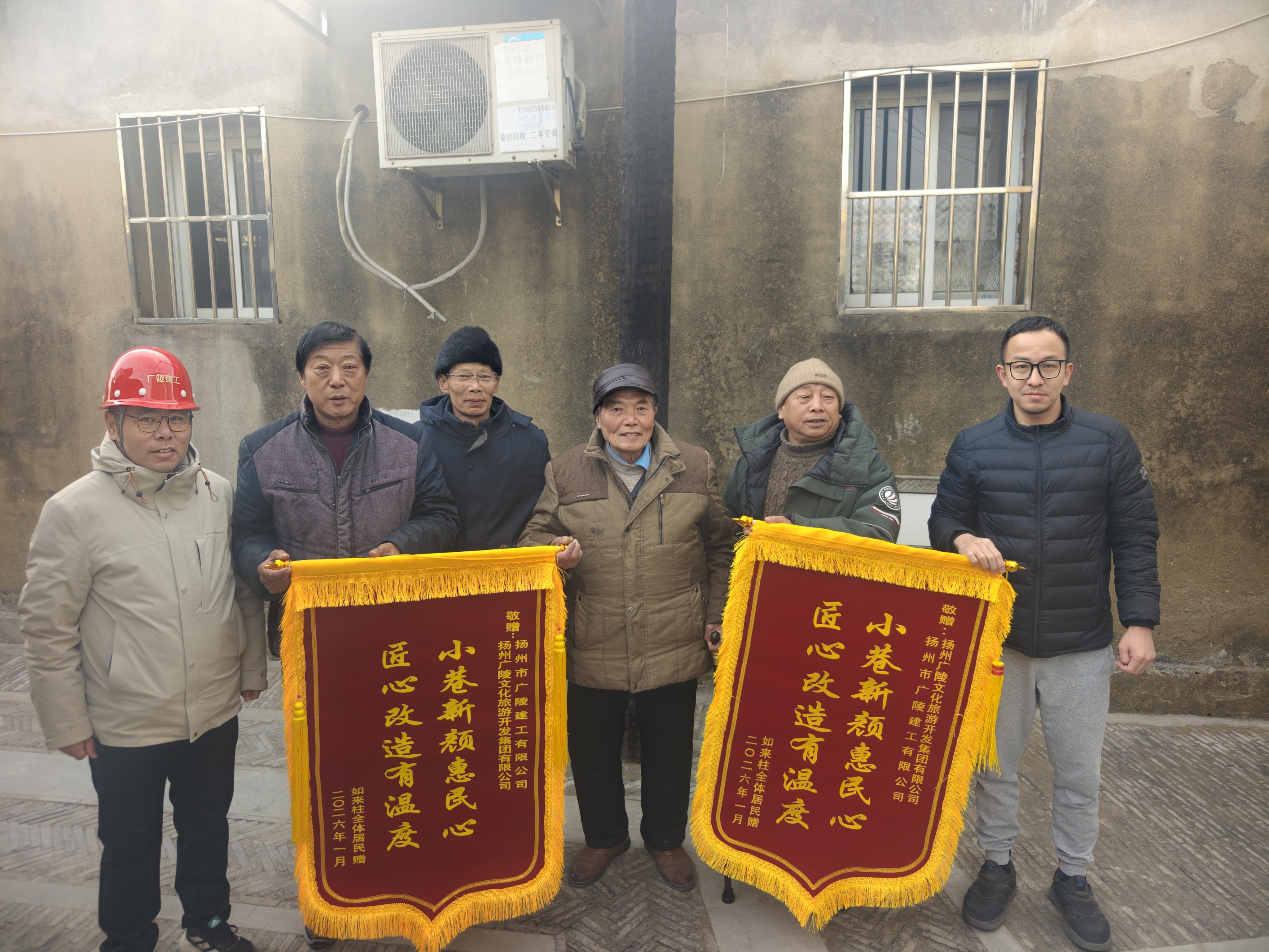 近日,扬州市广陵建工有限公司承建的南河下历史文化街区保护和提升一期项目(居民修缮及街道整治工程)现场暖意融融。如来柱巷的居民代表们将印着“小巷新颜惠民心匠心改造有温度”的锦旗送到项目团队手中,用最质朴的方式,表达对工程质量与暖心服务的高度认可。南河下历史文化街区作为扬州古城的重要组成部分,承载着城市的历史记忆与文脉传承。此次保护和提升工程以“修旧如旧、以民为本”为核心原则,既聚焦历史风貌的保护留存,也着力解决居民的实际生活需求。项目启动以来,广陵建工在推进居民房屋修缮、巷道铺装整治等工作中,始终把居民满意度放在首位。在巷道铺装施工环节,项目团队严格把控工艺细节,对路面平整度、防滑性、排水性等反复打磨优化,确保铺装质量扎实耐用。同时建立“居民沟通响应机制”,安排专人每日对接居民诉求,小到一处地砖的调整、一处管线的走向,都第一时间倾听、协调、解决,让居民全程参与到改造过程中。一面锦旗,一份认可,亦是一份前行的动力。广陵建工将以此次居民点赞为契机,持续践行“为民办实事”的初心,在古城保护与民生改善的道路上稳步前行,让千年扬州的老城肌理里,既有文化的厚度,更有民生的温度。